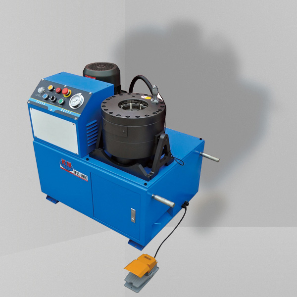 KM-91型系列縮管機(jī),公司技術(shù)人員針對(duì)環(huán)形機(jī)加潤滑油不方便這一情況,在機(jī)頭上設(shè)計(jì)增加了自注潤滑油杯,模座上增加了油槽,模座間增加了彈性樹脂層,防止接頭上的鋅層脫落劃傷工作錐面和缸筒,考慮到現(xiàn)在扣壓時(shí)異型接頭較多這一現(xiàn)象,增加了機(jī)器的收擴(kuò)量和通過能力。新型機(jī)頭支架的選用改變了機(jī)頭和支架長期焊接導(dǎo)致缸筒變形等一系列弊端。